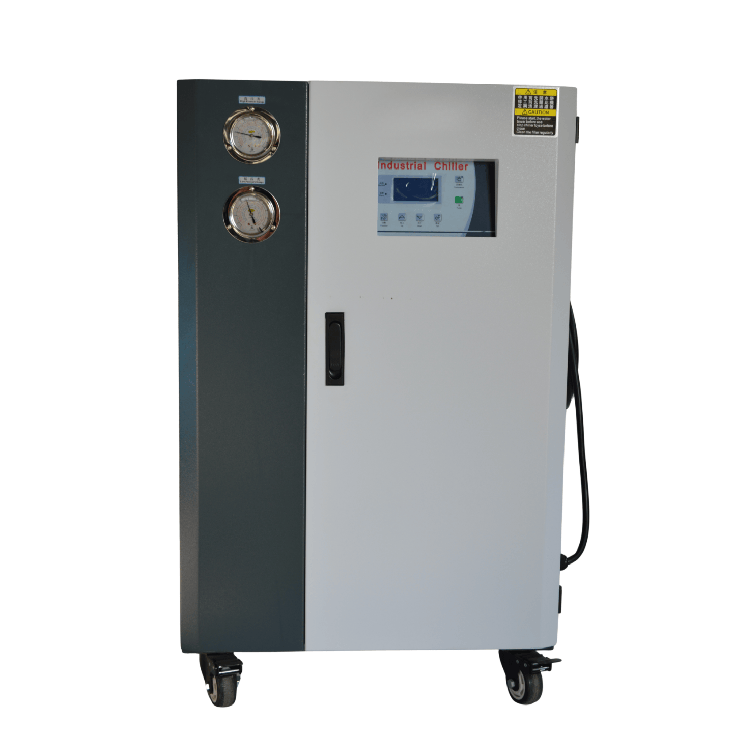 Features •The cooling temperature range: 7 °C~35 °C. •Stainless-steel temperature preservation water tank. •Anti-icing protection. •R22 refrigerant, good refrigeration effect. •High-Low voltage switch control for refrigeration circuit. •Compressor pump has overload protection. •Shell and tube condenser, fast heat conduction, good heat dissipation effect. •Shell and tube condenser and evaporator have fast heat conduction and heat exchange. good heat dissipation and refrigeration effect. ·•Changing to Eurocode safety loop type, add "CE' after the model
